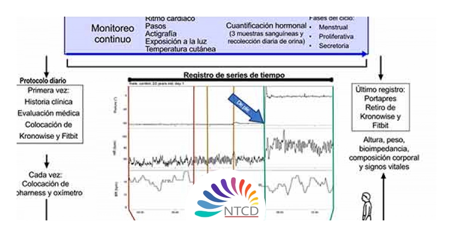 Para monitorearles el ciclo cardíaco y respiratorio se les colocó una banda Bioharness mientras permanecían acostados, respirando rítmicamente (proceso asociado a un buen estado de salud) y también de pie; asimismo, un reloj inteligente con el propósito de medir el ritmo cardíaco, frecuencia de pasos, calidad del sueño y temperatura corporal durante el día.