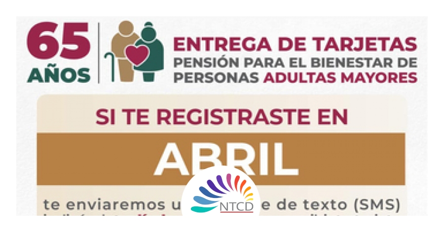 El Gobierno de México, a través de la Secretaría de Bienestar, informa que del 20 de junio al 3 de julio recibirán la tarjeta del Banco del Bienestar quienes se registraron a la Pensión para el Bienestar de las Personas Adultas Mayores en el mes de abril.