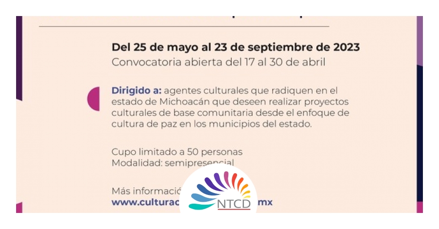_ La Secretaría de Cultura federal, la Secretaría de Cultura de Michoacán, la Universidad Michoacana de San Nicolás de Hidalgo y el Centro Cultural "La Estación" de Apatzingán, buscan desarrollar proyectos culturales comunitarios para fomentar la memoria colectiva y compartir saberes. Por ello, invitan a los agentes culturales de Michoacán a participar en el diplomado "La Pixca: Cultura Comunitaria para la paz".