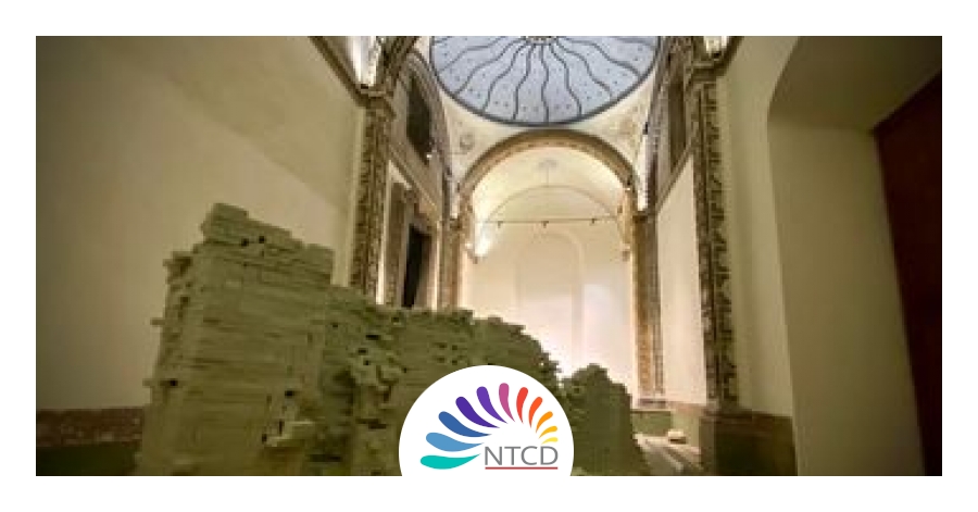 Este es el caso de Meanwhile (Mientras tanto, 2018), escultura efímera fabricada con cinco mil ladrillos de poliestireno, emplazada en la nave central del recinto y cuya estructura se apropia de aspectos constructivos de la fachada del antiguo Ex Templo de Santa Teresa. A través de transductores eléctricos, colocados al interior de la obra, esta escultura es sometida a vibraciones que reproducen la intensidad del sismo que ocasionó la caída de la cúpula de la Capilla del Señor de Santa Teresa en 1845.