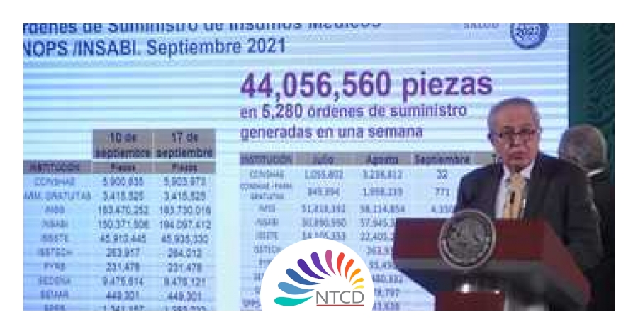 El secretario Alcocer Varela mencionó que la Oficina de las Naciones Unidas de Servicios para Proyectos (UNOPS) y el Instituto de Salud para el Bienestar (Insabi), emitieron 297 órdenes de suministro correspondientes a un millón 095 mil 796 piezas para entregar a Oaxaca entre el 20 de agosto y el 10 octubre.