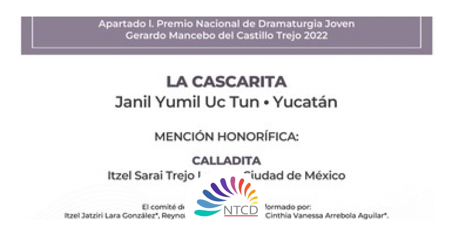 La Secretaría de Cultura del Gobierno de México, a través del Centro Cultural Helénico y el programa Cultural Tierra Adentro, celebra a La cascarita, escrita por Janil Yumil Uc Tun, que ha sido seleccionada como la obra ganadora del Premio Nacional de Dramaturgia Joven Gerardo Mancebo del Castillo Trejo 2022, un programa que se desprende de la convocatoria “Premios Nacionales de Dramaturgia”.