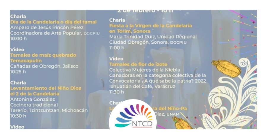 Las charlas virtuales continuarán el 2 de febrero a partir de las 10:00 horas. La primera estará a cargo de la coordinadora de Arte Popular de la DGCPIU, Amparo de Jesús Rincón Pérez, quien abordará el tema “Día de La Candelaria o día del tamal”.