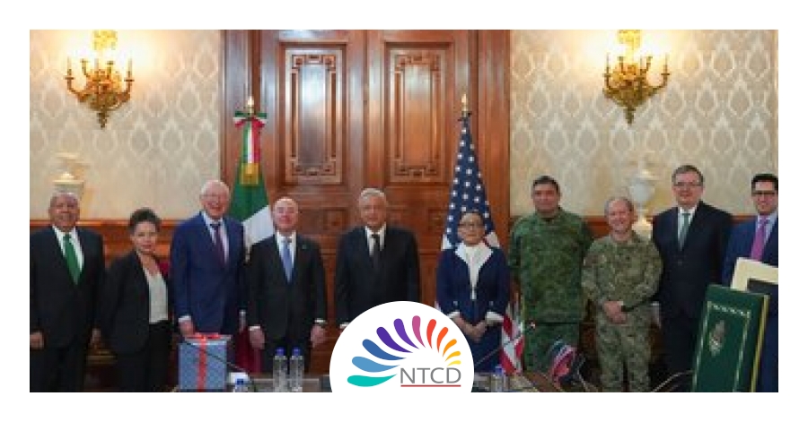 La delegación del gobierno mexicano, encabezada por el presidente López Obrador, estuvo integrada por el secretario de Relaciones Exteriores, Marcelo Ebrard Casaubon; el secretario de la Defensa Nacional, Luis Crescencio Sandoval González; el secretario de Marina, José Rafael Ojeda Durán; la secretaria de Seguridad y Protección Ciudadana, Rosa Icela Rodríguez Velázquez; el titular del Instituto Nacional de Migración (INM), Francisco Garduño Yáñez; así como el jefe de la Unidad para América del Norte de la SRE, Roberto Velasco Álvarez.