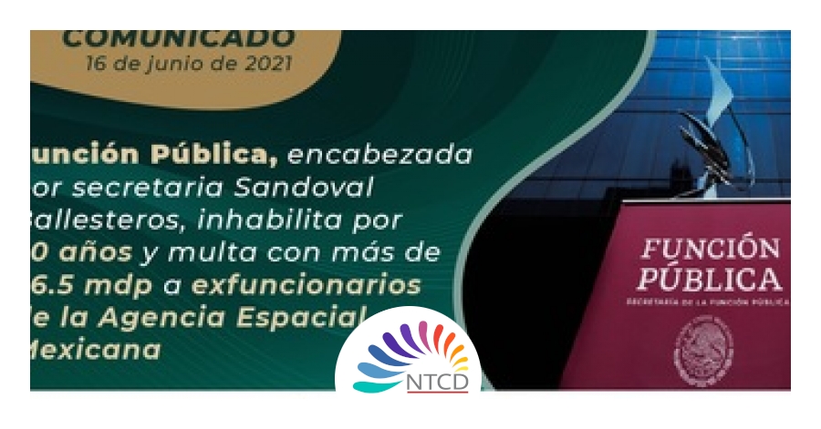 La secretaria Irma Eréndira Sandoval Ballesteros informó que la Función Pública “determinó sancionar con inhabilitación de 20 años a cuatro ex servidores públicos de la Agencia Espacial Mexicana (AEM) por causar un daño al erario superior a los 26.5 millones de pesos (mdp), tras haber suscrito y pagado indebidamente dos contratos para el desarrollo de un evento internacional de astronáutica en 2016”.
