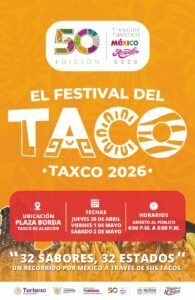 _ El Pueblo Mágico de Taxco de Alarcón, Guerrero, se prepara para convertirse en un punto de encuentro gastronómico nacional con la realización del “Festival del Taco”, una actividad que formará parte de las celebraciones del Tianguis Turístico de México 2026. El evento busca ofrecer un recorrido culinario por el país a través de uno de sus alimentos más representativos y se integrará a la agenda del tianguis como una actividad paralela para fortalecer la promoción de destinos, cultura y cocina mexicana.